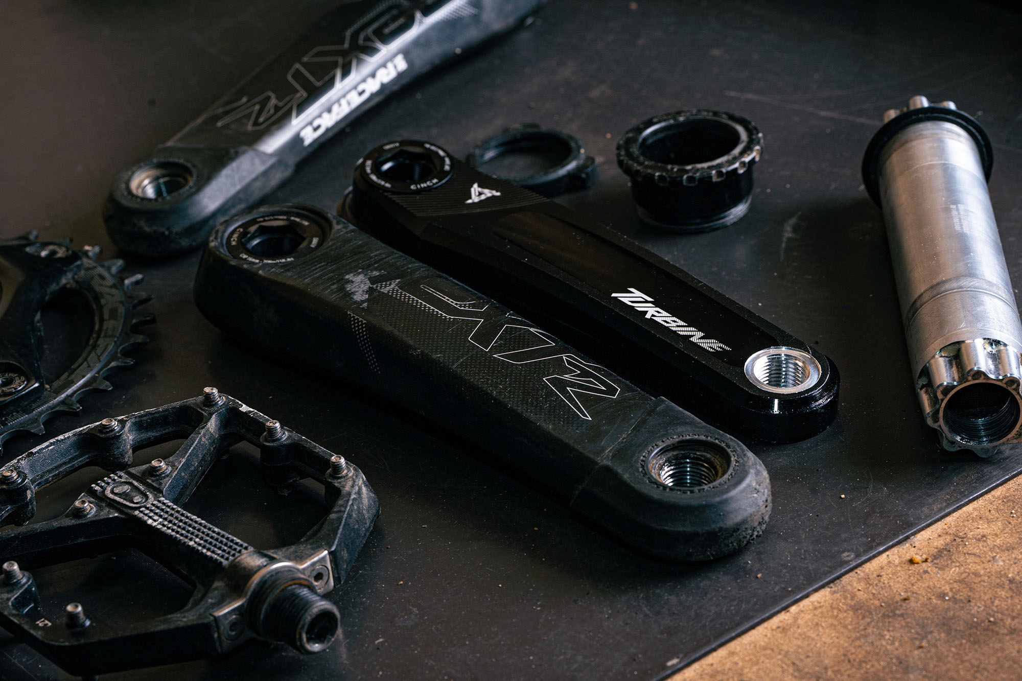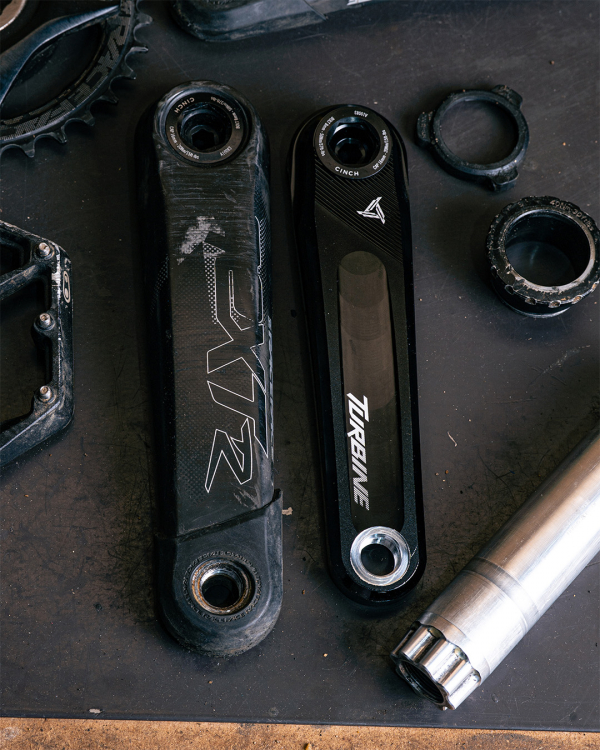 L'importance d'usiner des manivelles RaceFace réside dans le fait que le ROCKY MOUNTAIN PowerPlay utilise un "spider" avec une interface Cinch. Or en VTT seul RACEFACE utilise cette interface. Et seules les manivelles Turbine peuvent être ré-usinées car sur les autres modèles les trous d'évidages ne tombent pas biens.